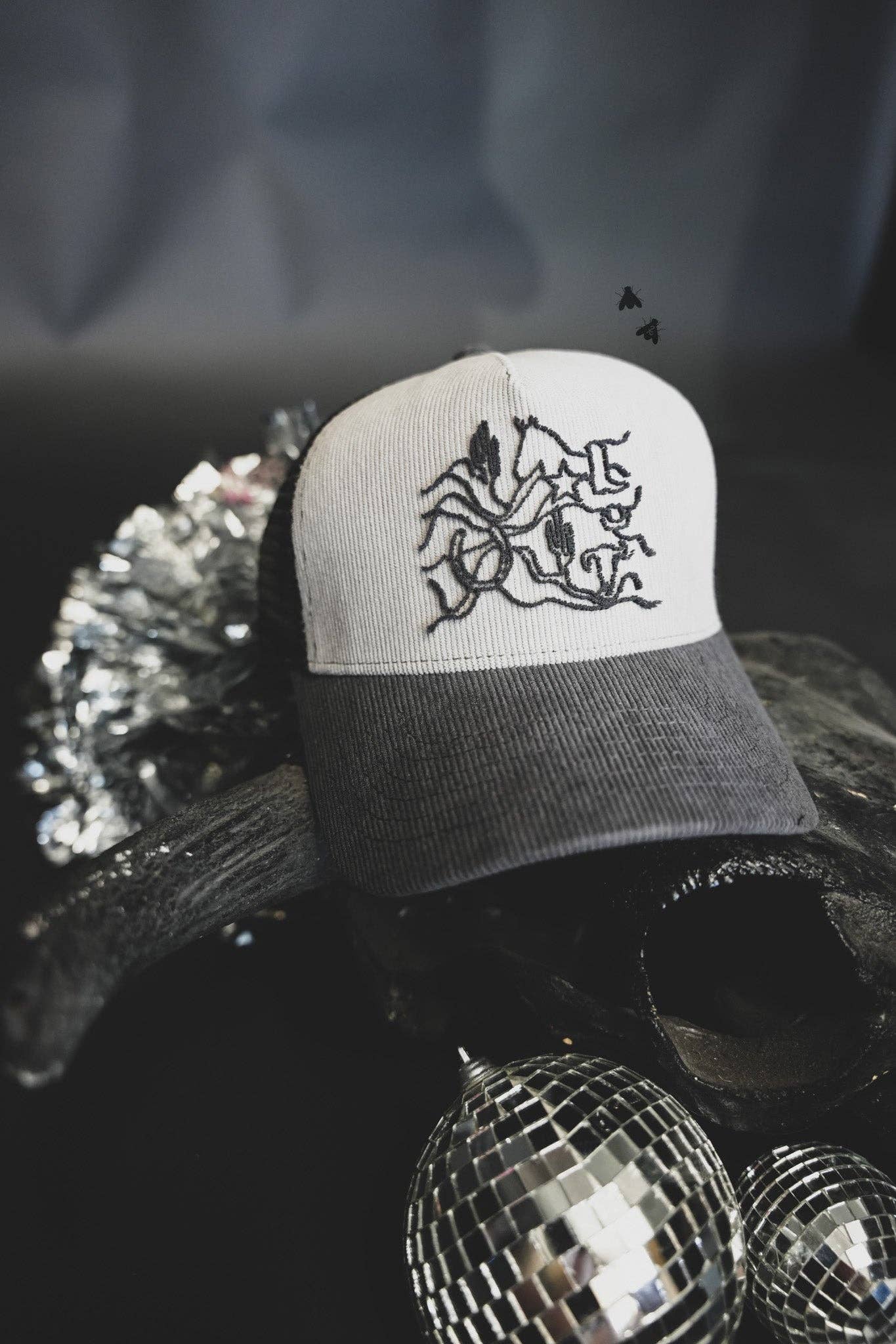 Discover the Wavy Western Cap in slate from 2 Fly Co. This women's trucker hat is a unique blend of Western charm and modern style. It's a versatile accessory that adds a touch of quirkiness to any outfit. As part of our second clothing brand, we've crafted this piece with original, hand-drawn designs, aiming to create a line that lasts beyond trends. Embrace a little Western, a little weird, and a lot of personality with this cap. Join the 2 Fly Co family and stay fly!